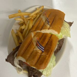 Una versión de inspiración cubana del clásico sándwich, con capas de sabroso jamón, cerdo asado a fuego lento, queso suizo, mostaza picante y pepinillos, todo servido en un pan dulce y suave. Prensado a la perfección, este sándwich ofrece un equilibrio de sabores deliciosamente único que seguramente satisfará tus antojos.